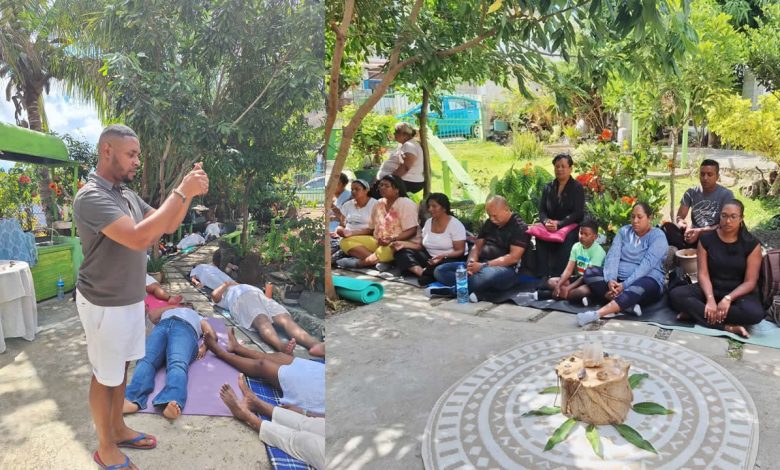 Les sessions de méditation se tiennent dans le jardin verdoyant de Jacques-Henri, à l’Avenue des Bricoleurs, Morcellement Eau-Bonne à Bambous — un lieu paisible où la nature invite à l’intériorité.