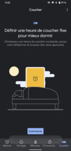 Une nouvelle mise à jour de l’application Horloge, valable uniquement sur les Pixel, laisse apparaître un nouvel onglet “Coucher” à côté de l’alarme, du minuteur et du chronomètre. Il s’agit en fait d’un nouvel outil permettant de configurer l’heure de son coucher et de son réveil, pour chaque jour de la semaine, afin d’avoir un meilleur sommeil.