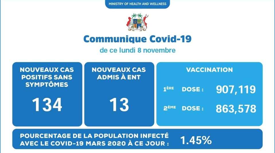 Covid-19 : 134 nouveaux cas sans symptômes et 13 admis à ENT ce lundi 8 novembre
