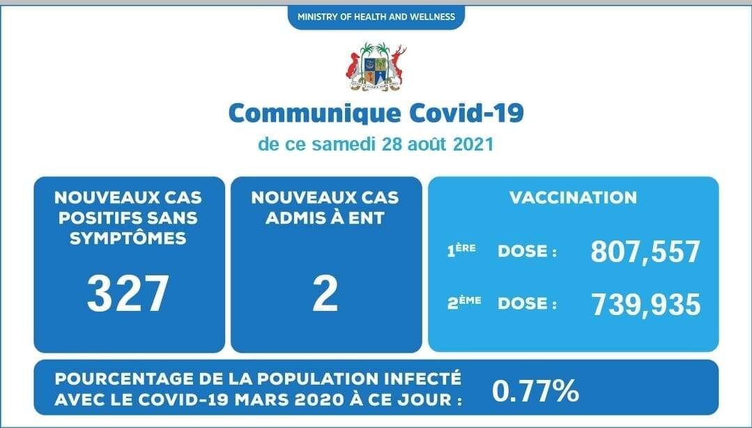 Ce samedi, le ministère de la Santé indique qu’il y a eu 327 nouveaux cas de Covid-19 sans symptômes enregistrés. Aussi, il y a eu deux cas admis au New ENT Hospital.