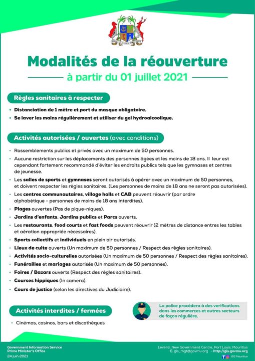 Aussi, les plages seront rouvertes pour que les Mauriciens puissent pratiquer la marche et la natation mais les pique-niques restent interdites.