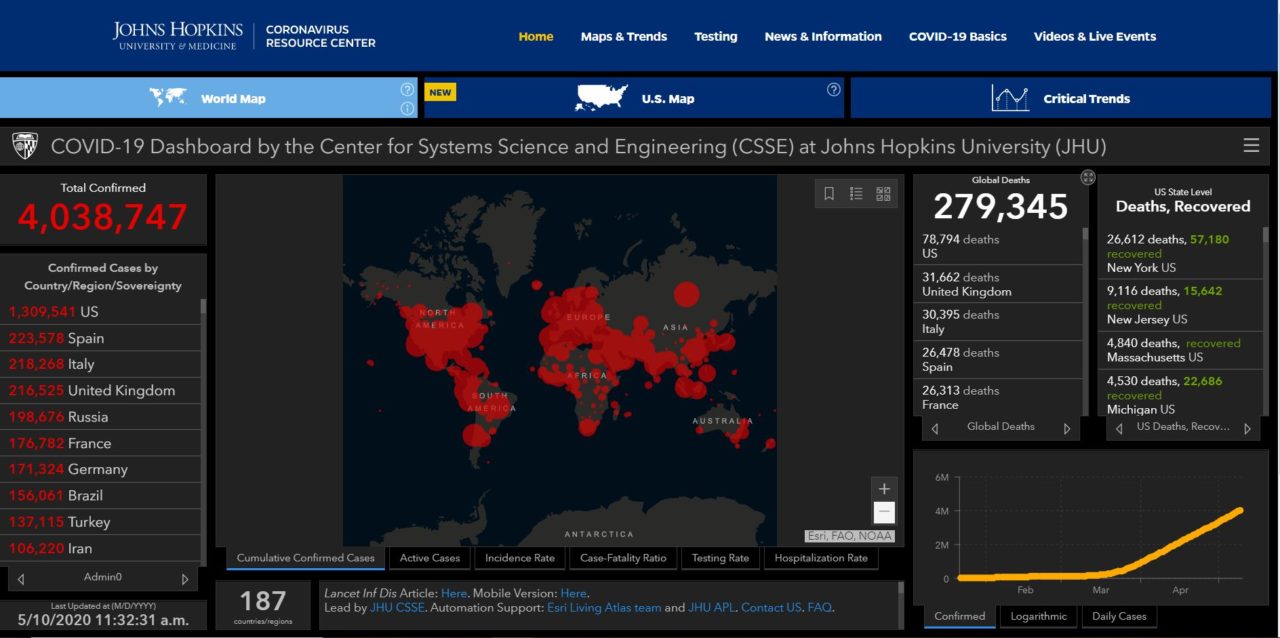Covid-19 : plus de 4 millions personnes contaminées dans le monde (Johns Hopkins)