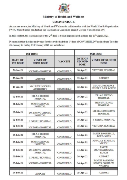Ça y est. Pour votre deuxième dose du vaccin anti-covid, vous pouvez désormais vous connecter sur la plateforme BeSafe Moris pour prendre rendez-vous. L’interface vous demande d’inclure la date de votre premier vaccin et de choisir le vaccin inoculé notamment Covaxin ou Covishield ainsi que le lieu de la vaccination faite précédemment. Une nouvelle date vous sera alors communiqué.