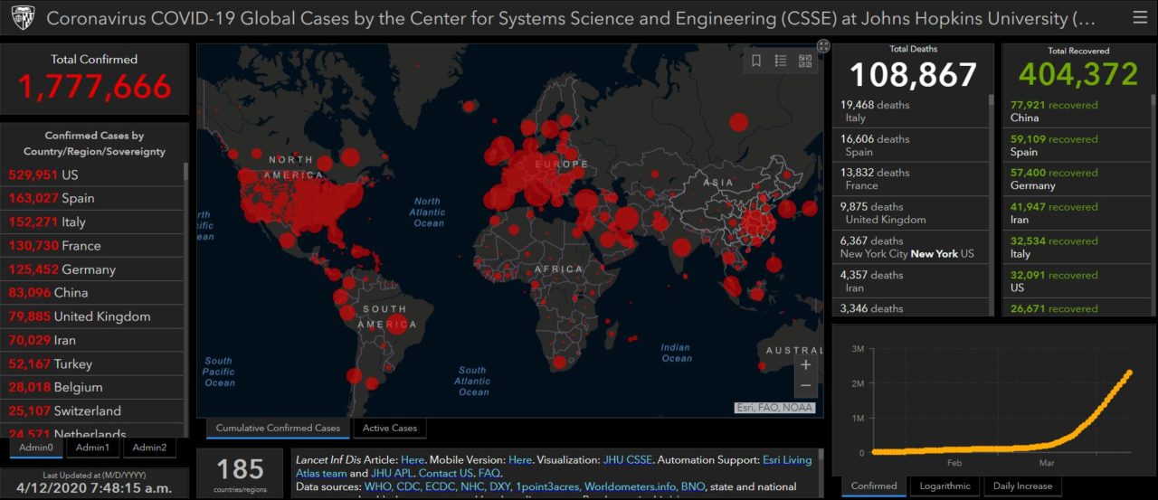 Pour ce qui est des infections, le Covid-19 touche 1,777,666 personnes dans le monde à ce jour (dimanche 12 avril à 7h48). Les Etats-Unis restent le pays le plus touché avec 529,951 cas officiels.
