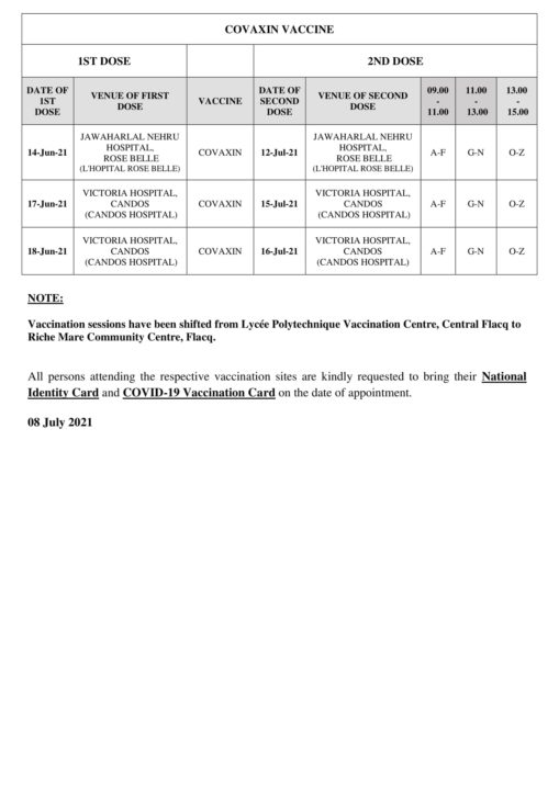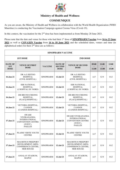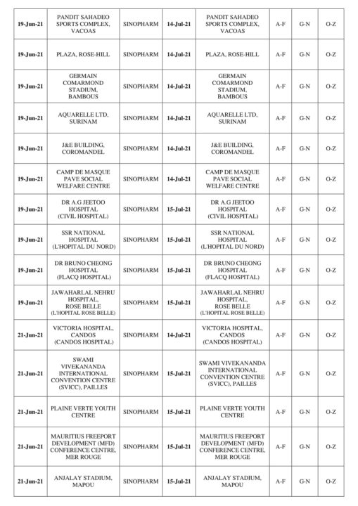 Ceux qui ont eu la première dose de Sinopharm entre le 16 et le 23 juin ainsi que ceux qui ont eu la première dose de Covaxin entre le 14 et le 18 juin pourront avoir la deuxième dose de leurs vaccins entre le 12 et le 17 juillet.
