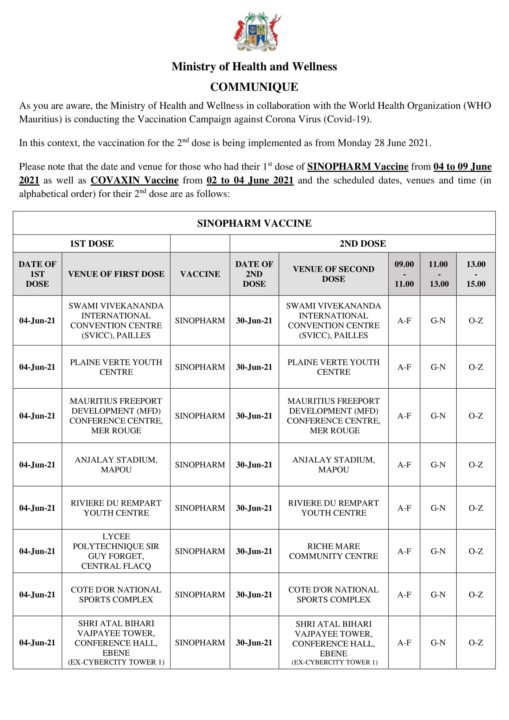 Depuis le 28 juin, le ministère de la Santé entame la campagne de vaccination anti-Covid-19 pour la deuxième dose des vaccins Sinopharm et Covaxin.