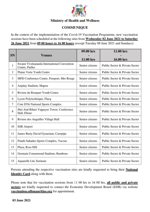 Vaccin Covid-19 : voici le programme du 2 au 26 juin