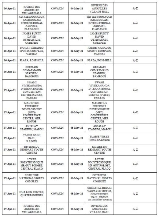 Suite au déconfinement, le ministère de la Santé fait part du calendrier de la campagne de vaccination anti-covid. Ce calendrier concerne uniquement pour la deuxième dose et pour ceux qui ont fait le vaccin Covishield/AstraZeneca entre le 16 et le 25 février et ensuite le vaccin Covaxin, entre le 3 et le 9 avril.