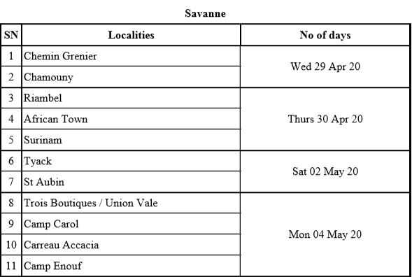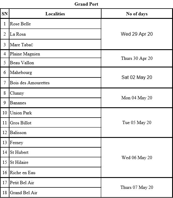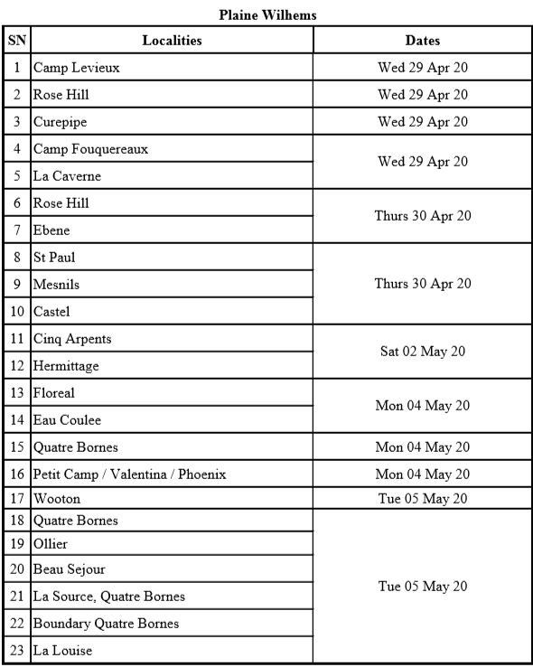 Voici la liste complète par district :